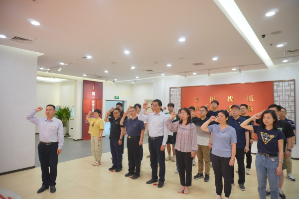 参观结束后,全体党员在学院党委书记姬国斌的带领下重温入党誓词。