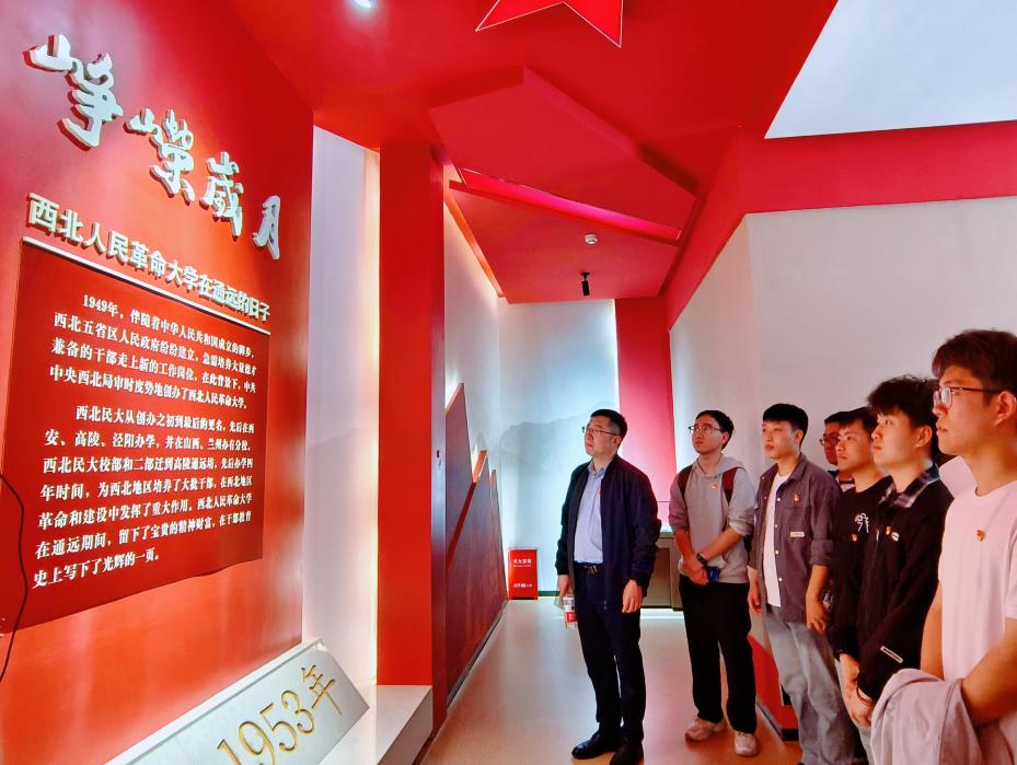 在西北人民革命大学旧址博物馆,全体党员面向党旗,重温了入党誓词;通过庄严宣誓,党员们回顾了申请入党时的奋斗追求和入党以来的成长历程,追寻了入党初心和使命。在讲解员的带领下,全体党员走进西北人民革命大学旧址博物馆,观看学习了以“峥嵘岁月——西北人民革命大学在通远的日子”为主题的基本陈列区,深刻领会了西北人民革命大学在新中国成立初期为培养优秀干部、锻造优秀青年所发挥的重要作用。据了解,1949-1953年间,西北人民革命大学共吸收培养了一万两千多名学员,形成了“与时俱进,艰苦创业”的西北民大精神,为巩固新生政权,恢复国民经济做出了重大贡献。