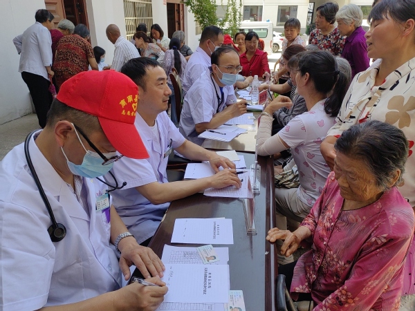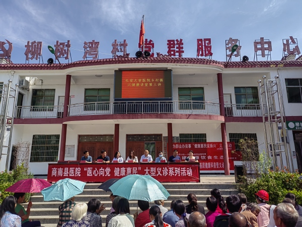 为了深入开展学习贯彻习近平新时代中国特色社会主义思想主题教育,积极践行乡村振兴和健康中国战略,推进党建结对帮扶年度任务有效落实,6月15日,校医院联合商南县人民医院赴过风楼镇柳树湾村开展“医心向党、健康惠民、助力乡村振兴”义诊系列活动。商南县委常委、副县长栾义峰,商南县人民医院院长田军,过风楼镇党委书记刘亚楠,校医院党总支书记张嘉琦、院长穆喆出席了本次活动。
