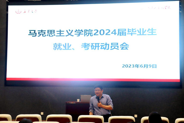 为深入开展学习贯彻习近平新时代中国特色社会主义思想主题教育,贯彻落实教育部及陕西省关于加强高校毕业生就业指导的有关要求,帮助学院高年级本科生提升就业能力、低年级本科生做好职业生涯规划,按照学校就业工作总体部署,结合学院学生工作实际,6月9日上午,马克思主义学院在渭水校区师生服务大厅第二报告厅举办2024届毕业生就业、考研动员会。院长陈怀平出席活动并做就业动员,学院2020级和2021级本科生参加会议。会议由院团委书记杨帆主持。