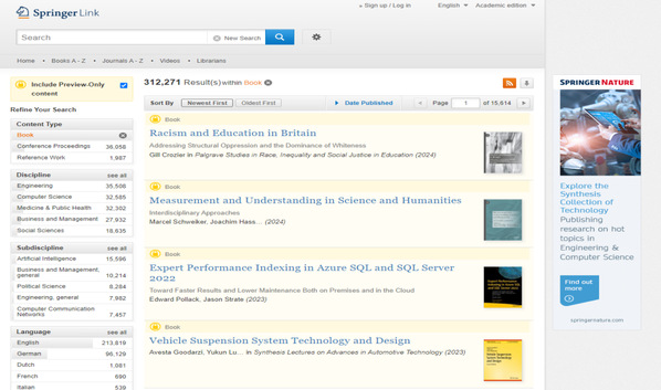 世界三大出版社之一Springer Nature电子图书平台开通试用