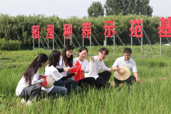 在稻渔种养示范基地,郎亮明老师向实践队员讲授“生态环境治理与粮食安全”主题思政课,队员们深入稻田,了解种养结合的循环农业新模式。