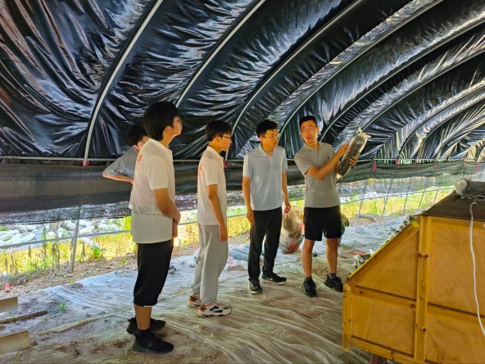 实践队前往商南县青山镇花园村,参观当地的灵芝种植基地、葡萄种植基地、木耳种植基地等一大批农业产业园,并在金丝峡镇寺湾村产业园木耳种植基地,参观木耳桩、木耳挂袋、接种箱等设备,深刻感受木耳种植改造的规模化、专业化。