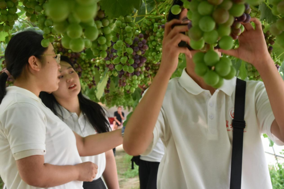 实践队员在葡萄大棚实地调研