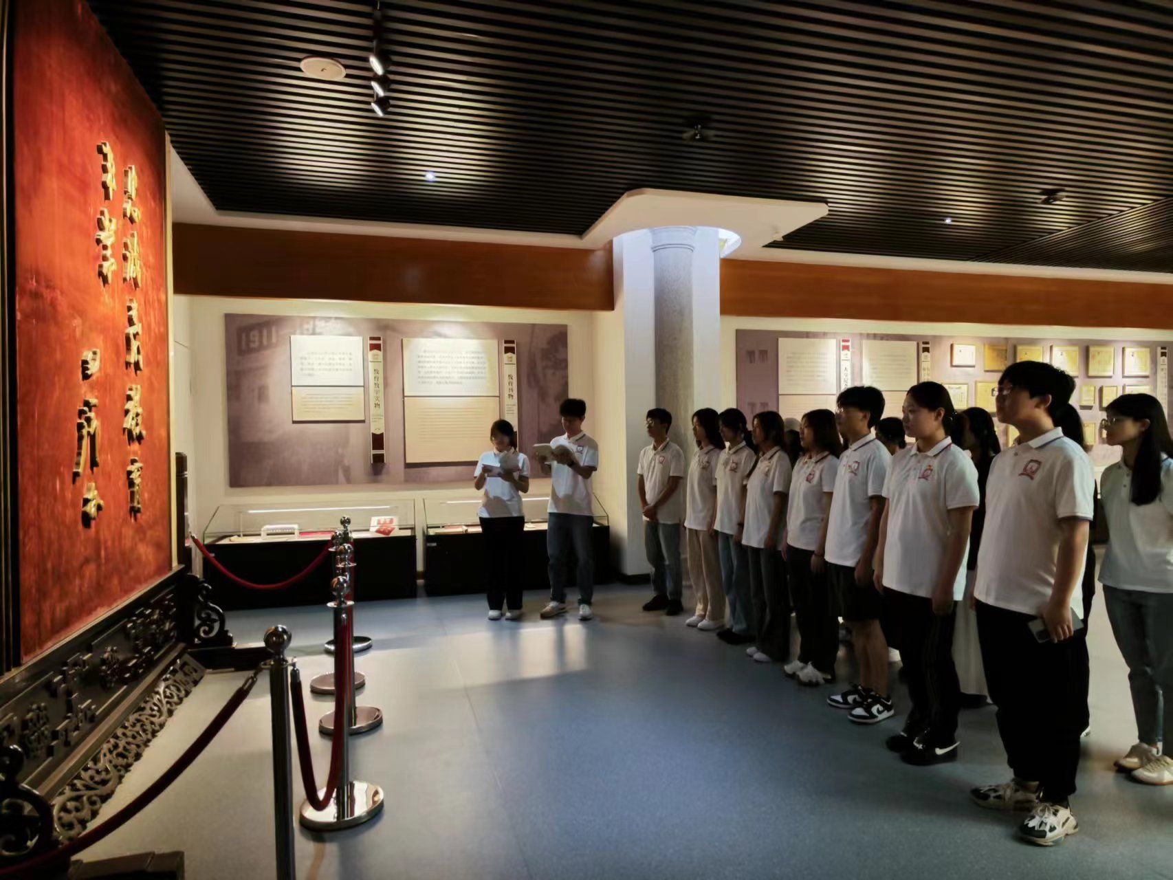 学院师生参观了教育博物馆,学习了中华民族几千年的教育发展史:中国早期教育的兴学设教、近代教育的西学东渐、民国时期的中西合璧及改革开放的承上启下等。在毛泽东题词“忠诚党的教育事业”展厅前,学生党员代表以诵读的方式共同学习了《中国共产党简史》及《习近平新时代中国特色社会主义思想学习问答》部分篇章,并以习近平总书记在庆祝中国共青团成立100周年大会上的重要讲话部分内容宣誓。师生们纷纷表示,中国悠久的历史和灿烂的教育文化通过博物馆中丰富多样的教育文物展示在我们面前,展现了中华民族得以伟大复兴的强大力量,我们要坚定“躬耕教坛、强国有我”“坚定不移跟党走,争做新时代好青年”的志向和抱负。