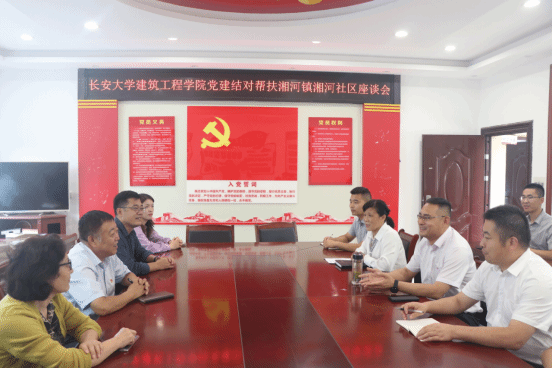 座谈会上,栾义峰介绍了学校在商南县乡村振兴工作的规划布局,并对建筑工程学院党委在湘河社区乡村振兴工作中提供的支持表示感谢。陈雷介绍了湘河镇茶产业的发展前景。王景云介绍了湘河社区基层党建、乡村医疗、基础教育等方面情况,交流了集体经济发展中的难点和需求。