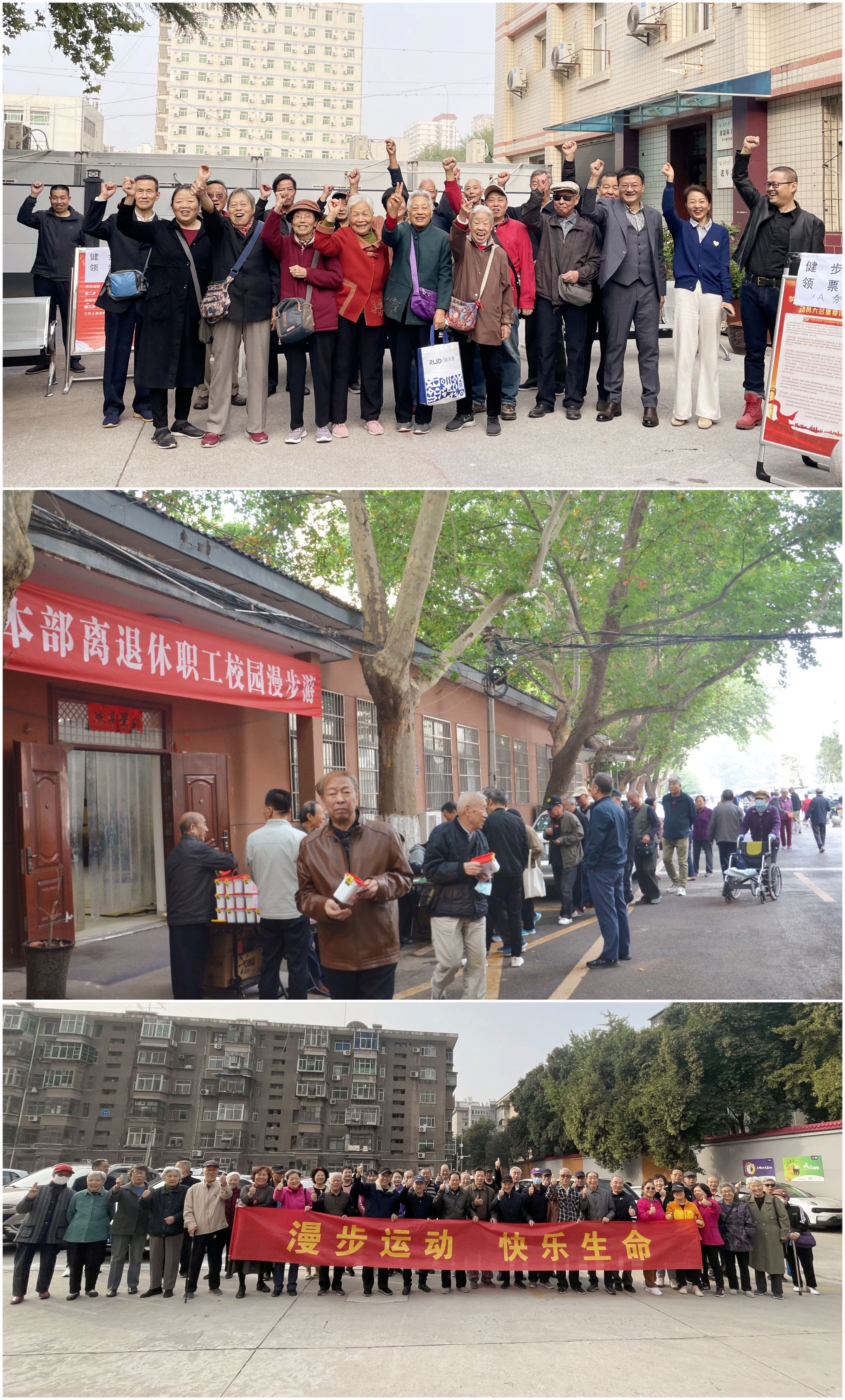10月9日,离退休工作处在南校区各家属院开展了“迎重阳 健康快乐行”校园健步走活动,约1500名离退休职工参加活动。