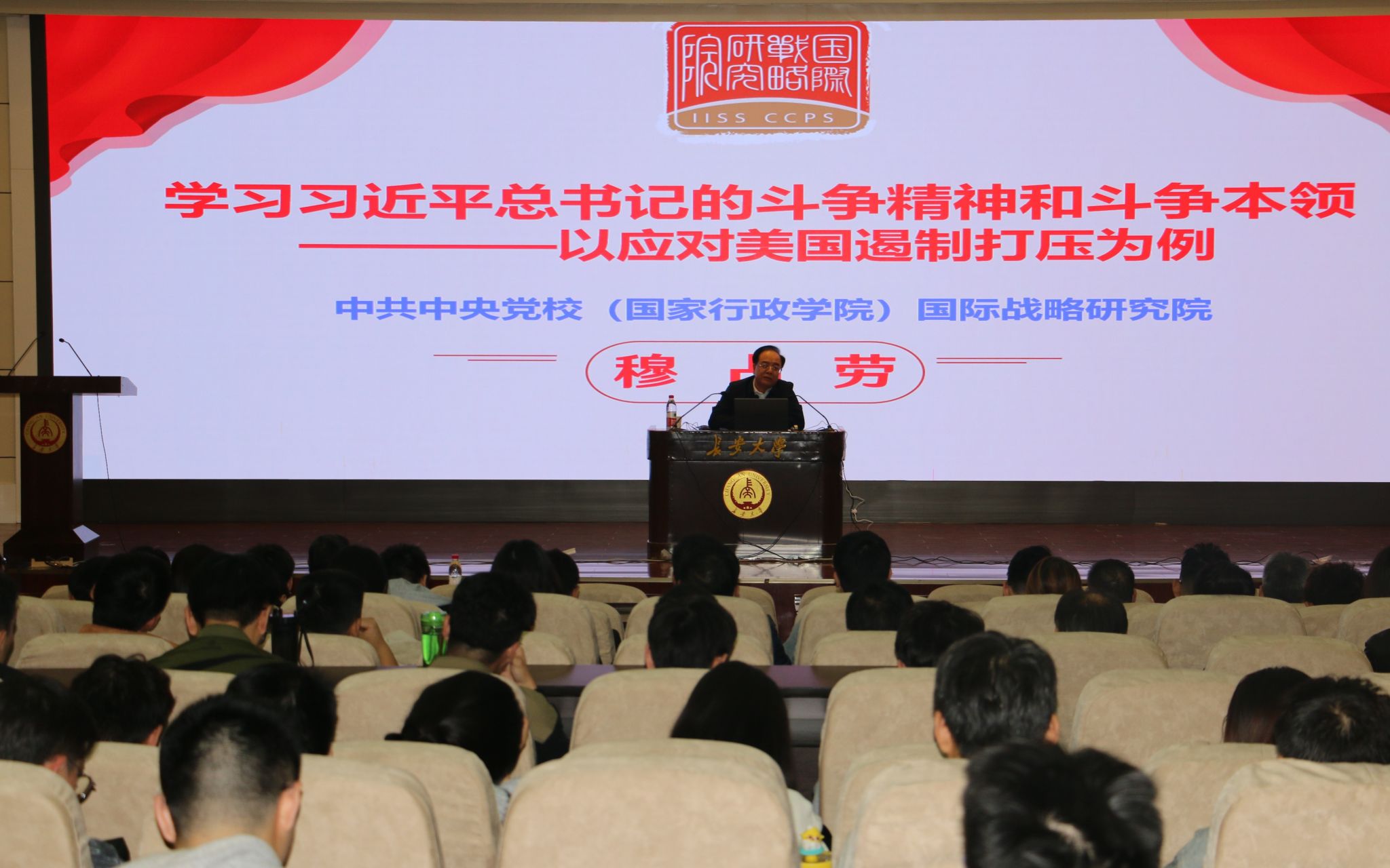 10月12日下午,公路学院在南校区北院学术交流中心报告厅举行理论学习中心组(扩大)会议,邀请中共中央党校(国家行政学院)国际战略研究院穆占劳教授作《学习习近平总书记斗争精神和斗争本领》的专题辅导报告。学院党委理论学习中心组成员、全体教工党员和部分学生党员代表共300余人参加学习。辅导报告由学院党委书记汪海年主持。