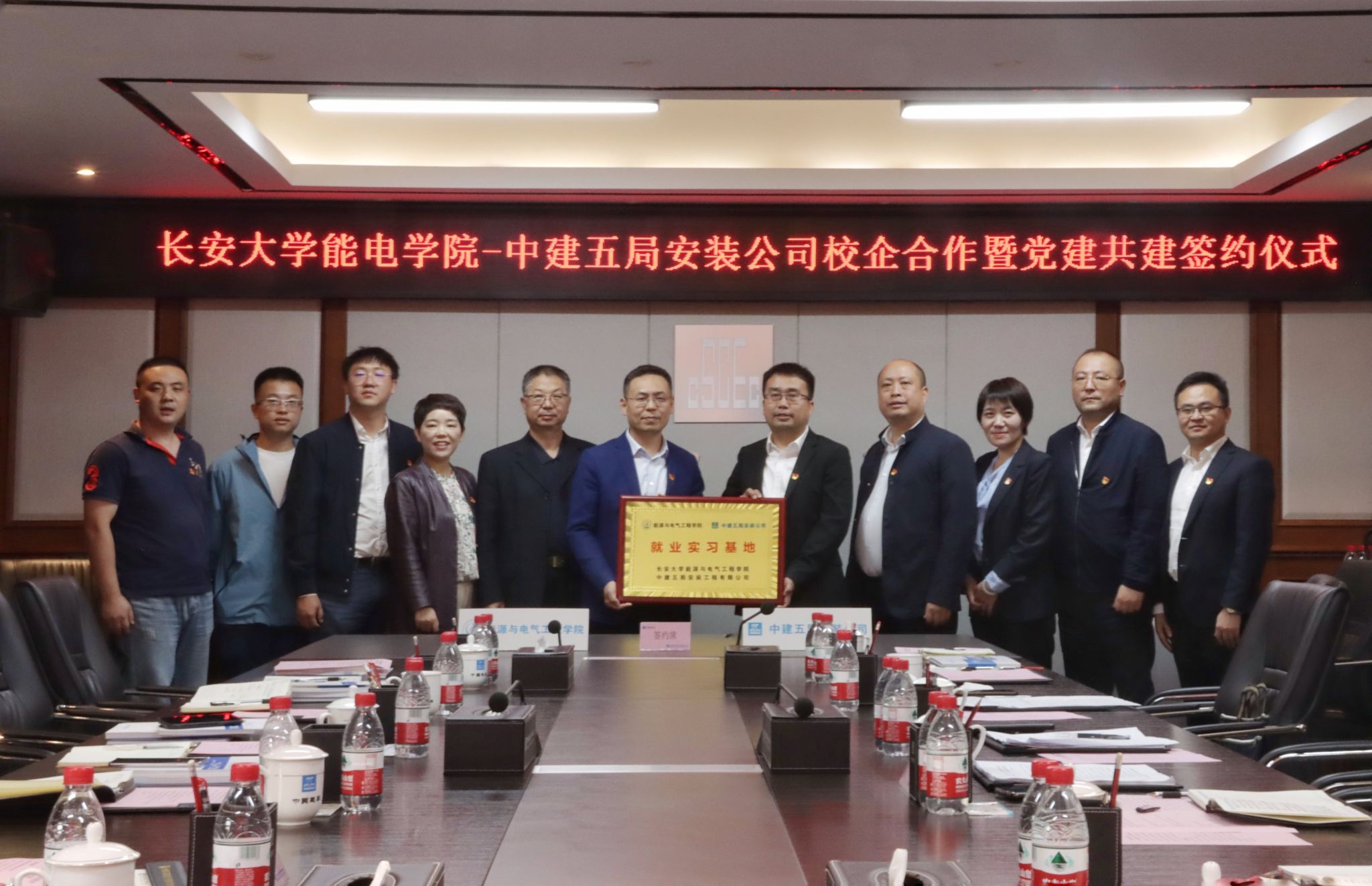 会上,姬国斌与张建峰共同为“就业实习基地”揭牌。学院副院长段晨东和中建五局安装公司总经理助理、董事会秘书王水平分别代表能电学院与中建五局安装公司签署了校企战略合作备忘录。双方将在人才培养、产学合作、学生就业及党建共建等方面开展深度合作。