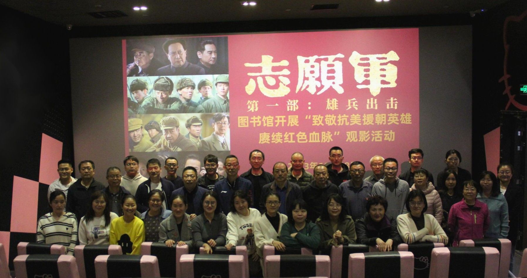 为深入学习贯彻习近平总书记关于弘扬爱国主义、传承红色文化的重要指示精神,赓续红色血脉,传承奋斗精神,10月18日下午,图书馆党总支开展“致敬抗美援朝英雄 赓续红色血脉”《志愿军:雄兵出击》观影活动。图书馆全体党员参加活动。