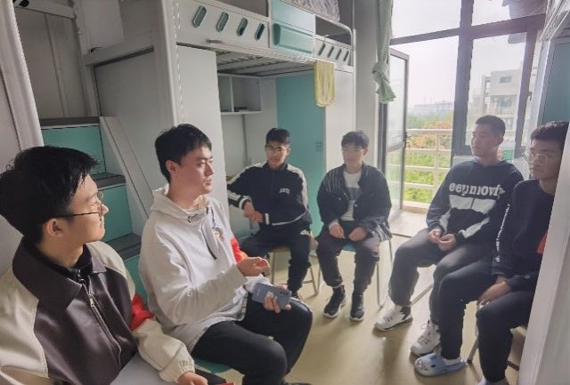 学生党员进宿舍,结对帮扶促适应。为深入了解新生的学习生活情况,各支部党员主动进入宿舍,与新生面对面沟通。党员们耐心听取新生的疑问,针对入党流程、专业发展、学科竞赛、学生组织等各方面进行解答,鼓励新生养成良好的学习习惯,合理规划大学生活,树立正确的思想观念,积极参与社会实践,以饱满的精神状态迎接每一天。近距离的交流不仅拉进了党组织和新生的距离,也为同学们提供了一个相互学习、共同成长的平台。
