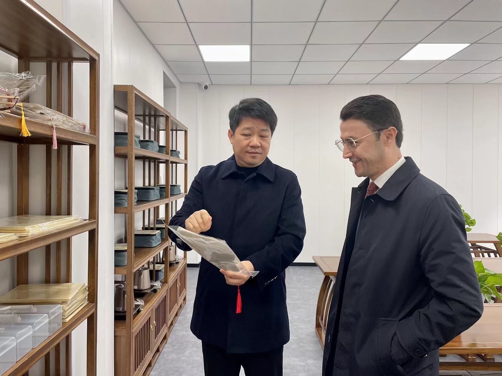 拉赫蒙参观了国际教育学院对外汉语培训中心,中心目前建设有HSK测试中心、中华才艺坊、专家工作坊、智慧教室、汉语教室、阅读室、汉语教师办公室。张伟详细介绍了中心的课程与平台建设等相关情况,提出应充分利用平台优势推动双方合作共建。
