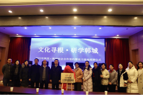为提高人才培养质量,提升实践育才能力,11月25日,人文学院与陕文投韩城公司人才联合培养基地签约挂牌仪式在陕文投韩城公司实践基地举行。人文学院工会主席孙希娟、中文系主任陈熙熙,陕文投韩城公司总经理田小平、副总经理王社龙,学院教师代表及2022级、2023级全体同学参加仪式。