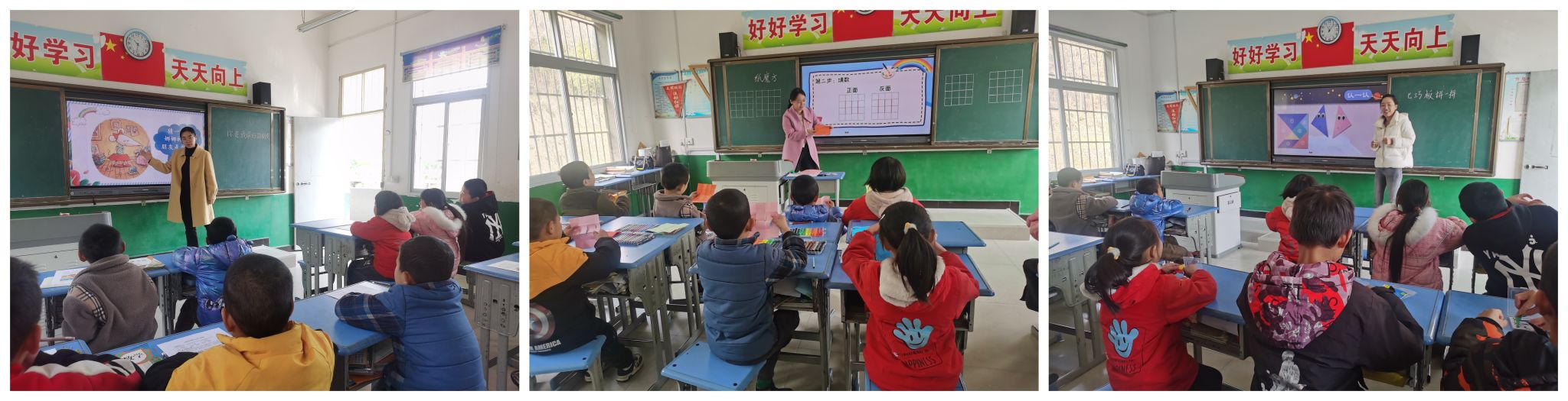 附属学校送教教师给村教学点的小学生带来了《好玩的纸魔方》《你是我最好的朋友》《七巧板拼一拼》三节示范教学。