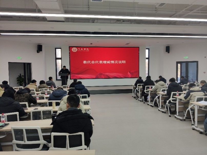 12月25日下午,汽车学院七届三次教职工代表大会在交通运输及智能装备创新平台2号楼101室召开。学院57名代表参加会议,会议由学院工会主席高扬主持。