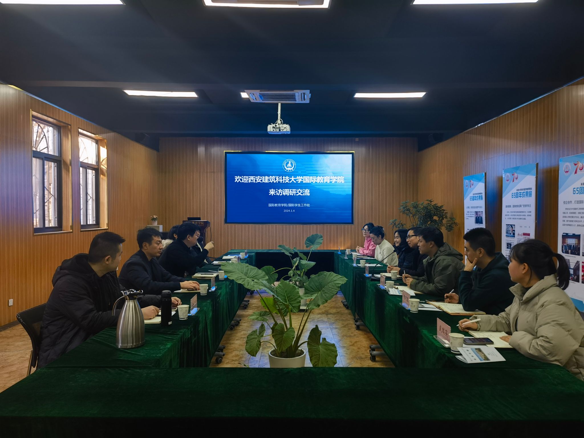 1月4日,西安建筑科技大学国际教育学院常务副院长段中兴、副院长吴宇等一行七人到国际教育学院交流座谈。国际教育学院院长张伟、副院长吕卫东及各科室负责人参加会议。