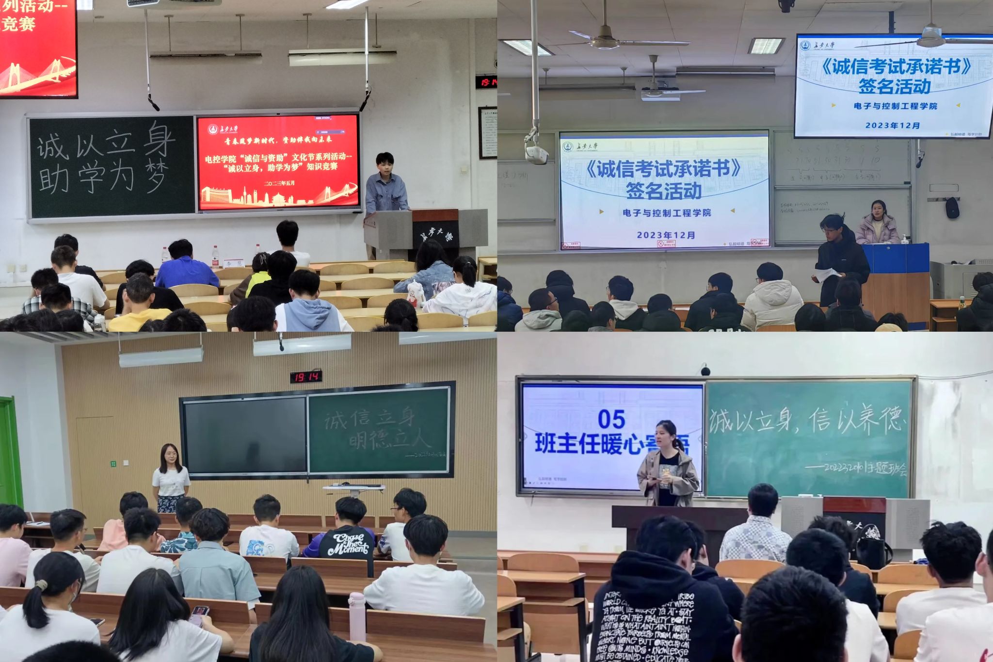 坚持从严从实,强化学风“监督力”。通过教育培训、学生资助、评奖评优等工作,深入开展励志、感恩、诚信主题教育活动。以学校学籍管理、违规违纪、考试作弊处理等相关文件为重点,定期开展考风考纪教育,解读失信考试案例,组织《诚信考试承诺书》签名、学生党员等骨干挂牌考试等活动。学院领导老师深入考场巡视期末考试,加强宣传教育,倡导诚信考试,构建优良学风。