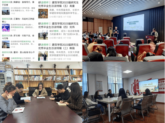 培养“一批榜样”,发挥学生骨干力量。建筑学院持续拓展典型榜样宣传平台,通过线上网络宣传、线下座谈交流等,营造主动向榜样学习、积极向标杆看齐的校园氛围。2023年中在“CHD菁才建苑”公众号上打造“研途榜样”特色板块,共计推出8期“优秀毕业生”“优秀毕业生干部”“国奖风采录”,累计阅读量达5000人次,影响广泛;学院还通过举办“新老生见面交流会”“就业听我说”等座谈会,定期邀请优秀毕业生、学生骨干定期答疑解惑;学院推选2名优秀研究生参与KY开元青马班、8名学生参与研究生骨干培训班,并都已顺利结业,课后通过宿舍、课题组等平台广泛宣传学习经验。