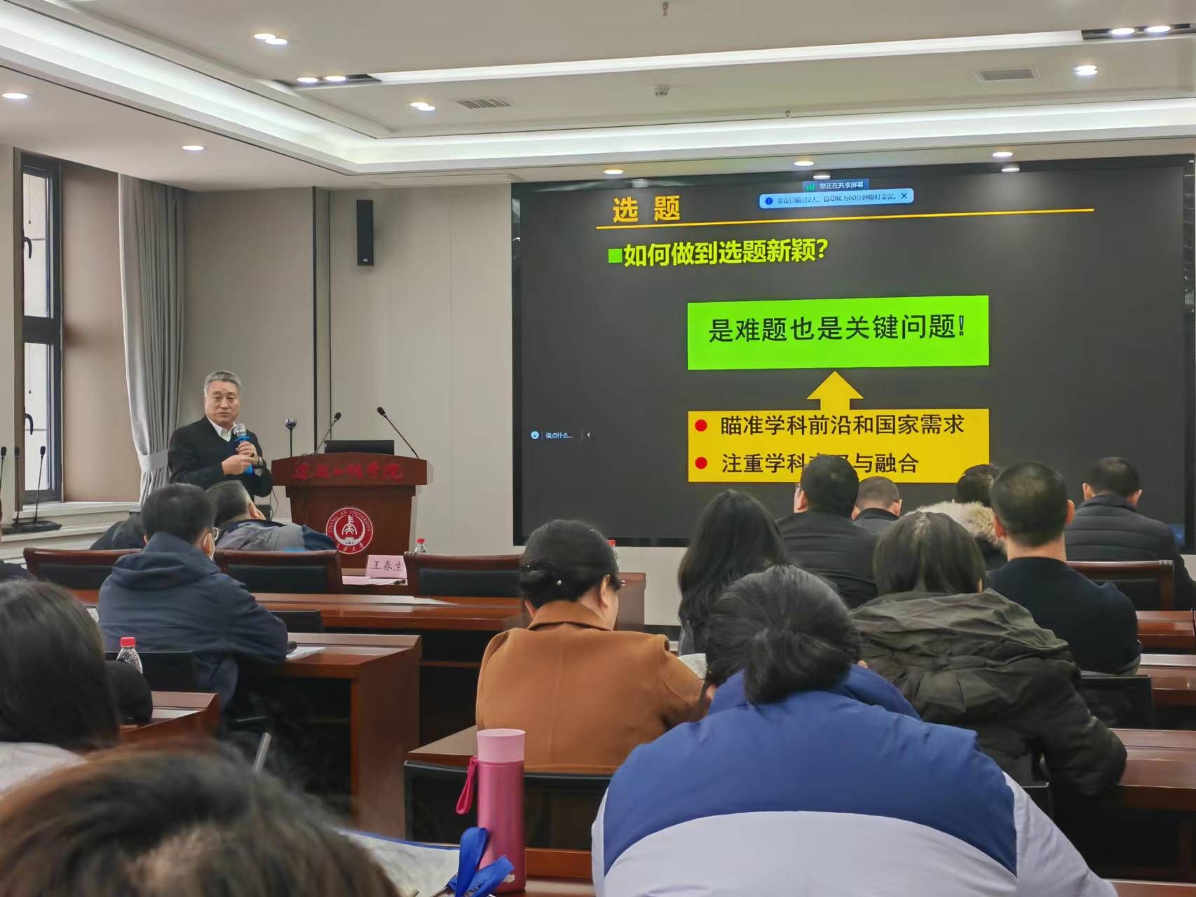 会上,牛荻涛教授作《选题与基金项目申请》的专题讲座,从基金的选题、申请书的撰写以及专家评审的角度进行分享,为学院教师申请国家自然基金提供宝贵经验。