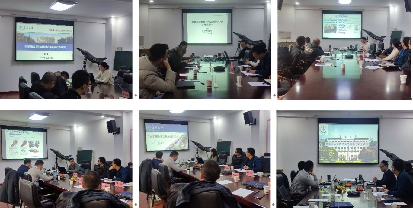 研讨会上作了3个专题报告和10个学术交流报告,前者包括变速箱中间焊接结构多轴疲劳寿命研究、精确几何模型上的多物理计算及其应用和机械故障靶向迁移诊断及其智能制造中的应用,后者包括多功能电动护栏抢修车锤头电机-液压泵系统研究、多功能电动护栏抢修车底盘行驶电驱动系统研究、智能车辆弯道行驶的轨迹跟踪稳定性控制研究、公路边坡护坡骨架快速施工装备研发及虚拟样机建立、面向复杂场景的机器人抓取检测系统研究、超高压径向柱塞泵柱塞副润滑特性分析、基于Fluent-Edem耦合的混凝土颗粒运动特性研究、复杂场景下的混凝土桥梁裂缝检测技术研究、六轴工业机器人导纳控制与末端接触力观测设计和大口径射电望远镜数字孪生技术。