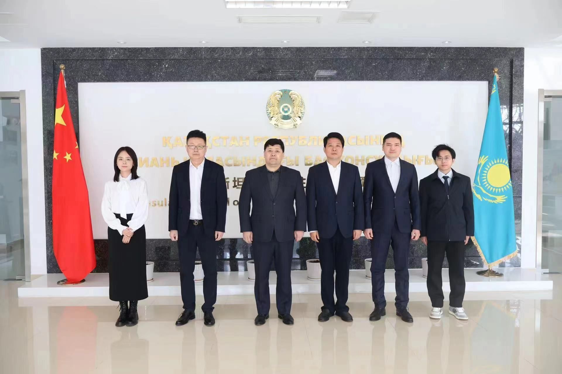 近日,国际教育学院院长、中国-中亚五国交通基础建设领域人才培养联盟秘书处办公室主任张伟一行4人拜访了哈萨克斯坦共和国驻西安总领事馆,哈萨克斯坦共和国驻西安总领事馆总领事克拉巴耶夫·佐齐汗、领事萨金德克夫•叶达、总领事助理叶尔努尔出席接见。