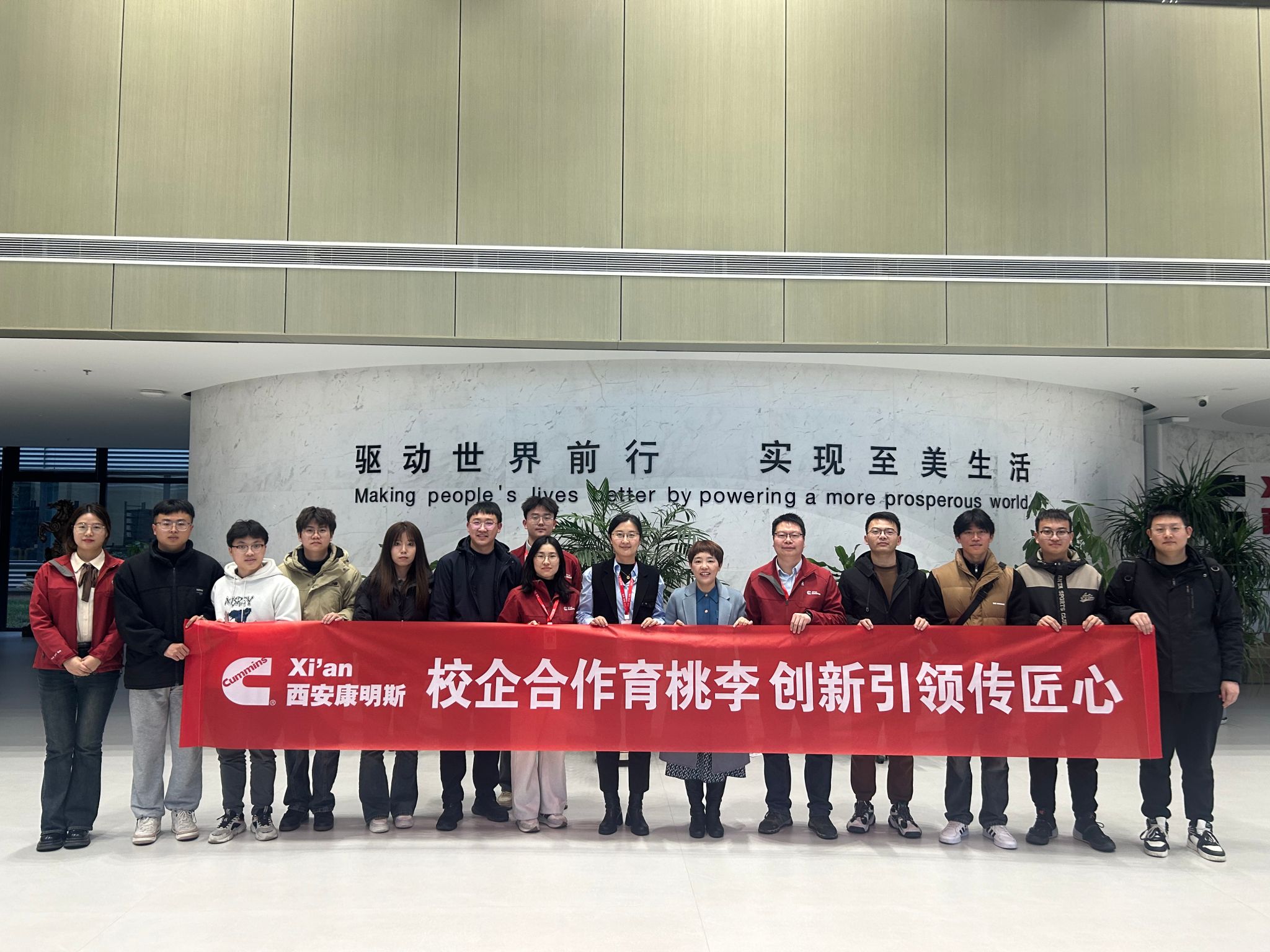 2月29日,学院党委副书记倪凤英、学办主任李金檑、毕业年级辅导员彭阳、宿雨心,2024届求职毕业生代表一行前往西安康明斯参观交流。