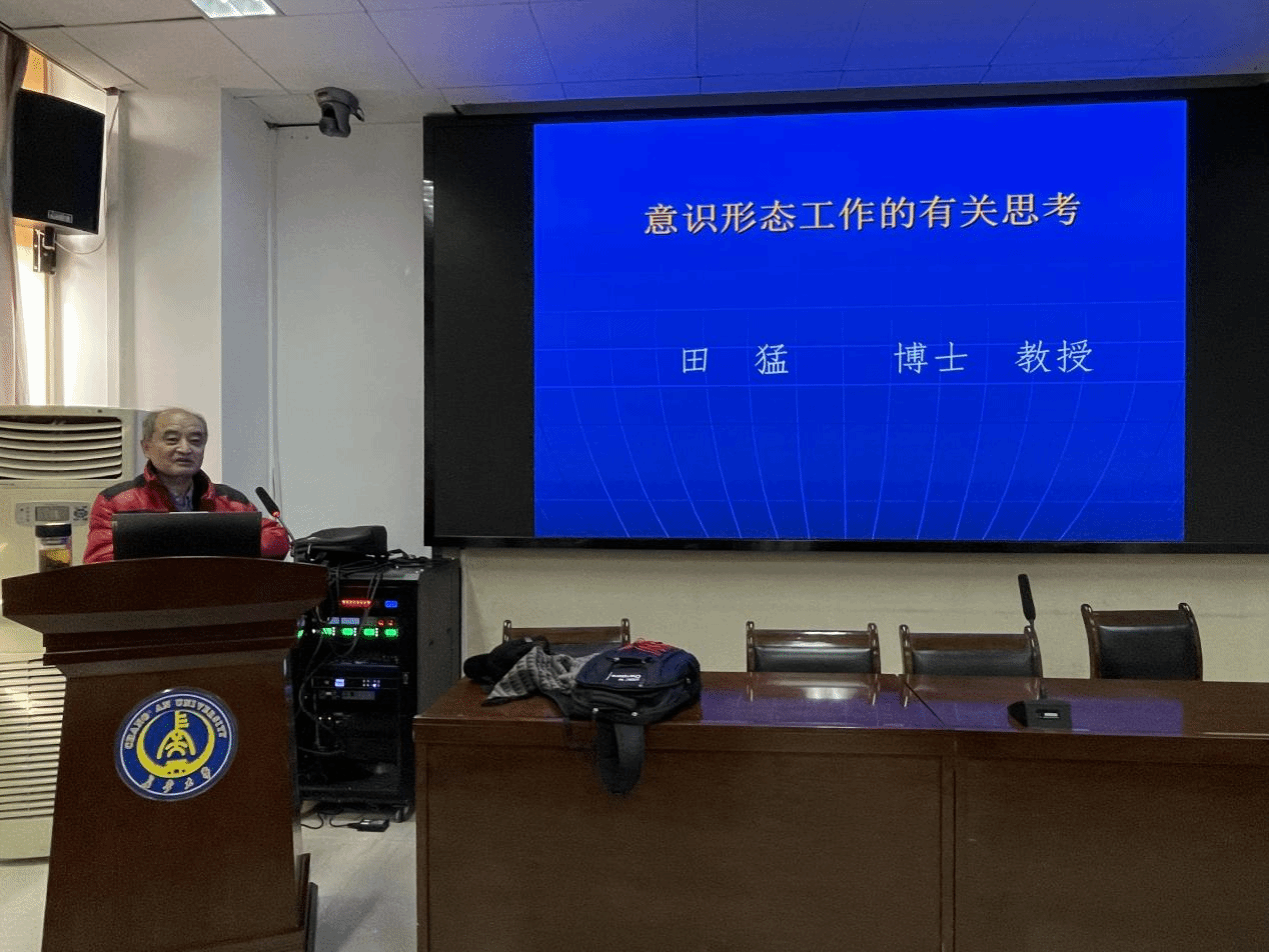 培训期间,田猛从意识形态的内涵、意识形态工作的重要性及个人认识三个方面展开讲解。他以中外历史、社会国情、热点问题为引,论述了意识形态工作对于巩固党的执政地位,维护国家长治久安,实现中华民族伟大复兴,调动群众积极性、主动性与创造性四个维度的重要作用。田猛分享了个人对意识形态工作的有关思考,他强调,我们要认识到人民群众在意识形态工作中的主体地位和首创精神,牢记江山就是人民,人民就是江山。