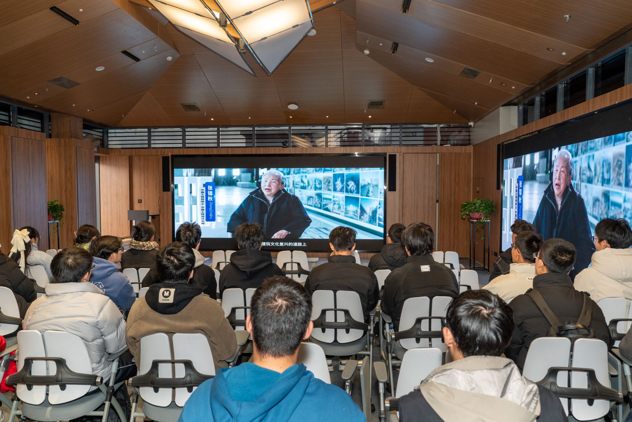 同学们参观了张锦秋院士馆,瞻仰张锦秋院士在建筑领域的杰出贡献,深切感受张锦秋院士对建筑事业的执着与热爱,也对中建西北院在科技研究方面的不懈追求有了更深刻的理解。参观后,师生们集中观看了中建西北院宣传片,了解公司的发展历程、核心价值观,张锦秋院士的设计理念以及公司未来发展规划。