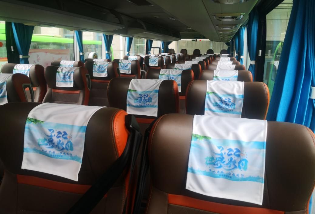校区通勤班车上张贴宣传头套
