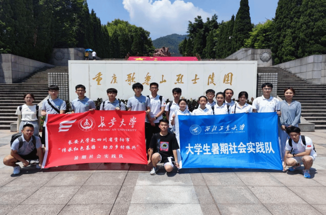随后学院赴重庆实践队与西北工业大学校团委赴重庆实践队在重庆歌乐山烈士陵园汇合。两队队员相互分享自己对于红岩精神的感悟以及实践心得,交换填写了调查问卷,并合影留念。这次交流进一步加深了队员们对学习和传承红色基因的理解,增进了两校之间的友谊。