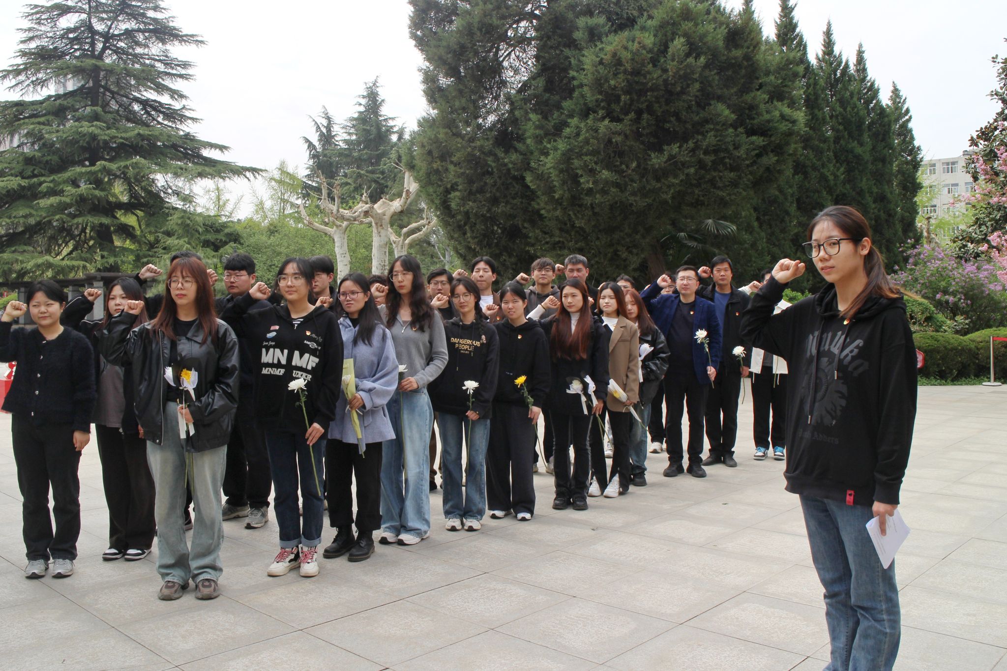 在烈士陵园纪念碑前,全体党员列队肃立、默哀鞠躬,向革命先烈致以最崇高的敬意。2023级研究生第一党支部书记刘雨辰、第二党支部书记史芷境带领全体党员面向鲜红的党旗,高举右拳,重温入党誓词,在铮铮誓言中表达对党的无限忠诚和为共产主义事业奋斗终生的坚定决心。随后,大家缓步绕行,瞻仰烈士纪念碑,敬献鲜花,深情缅怀革命先烈的丰功伟绩。