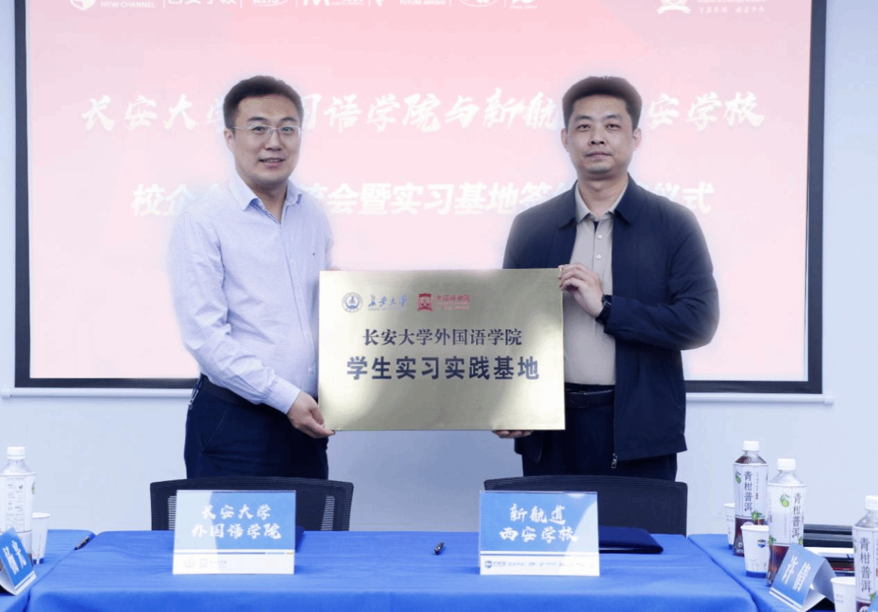 座谈交流会上,新航道西安学校运营中心总监何沈徽从创办历程、企业理念、团队文化、品牌活动、品牌荣誉等方面介绍了企业概况。人力资源部总监郑娜娜详细介绍了实习基地情况,包括校招职位、任职要求、岗位培训与考核方式及员工福利等。双方就合作事宜进行了深入沟通交流,达成了合作意向,签订了实习基地合作协议,并举行了实习基地签约授牌仪式。