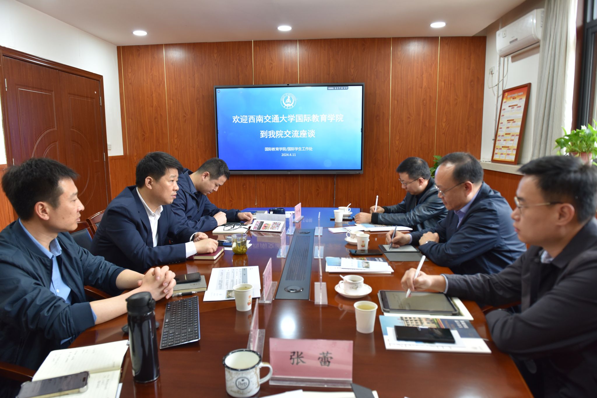 4月11日,西南交通大学国际合作与交流处处长/国际教育学院院长马磊、副处长/副院长李海等一行3人到KY开元集团官网国际教育学院调研交流。国际教育学院院长张伟、副院长吕卫东、孙林等人员陪同调研并开展交流座谈,座谈会由张伟主持。