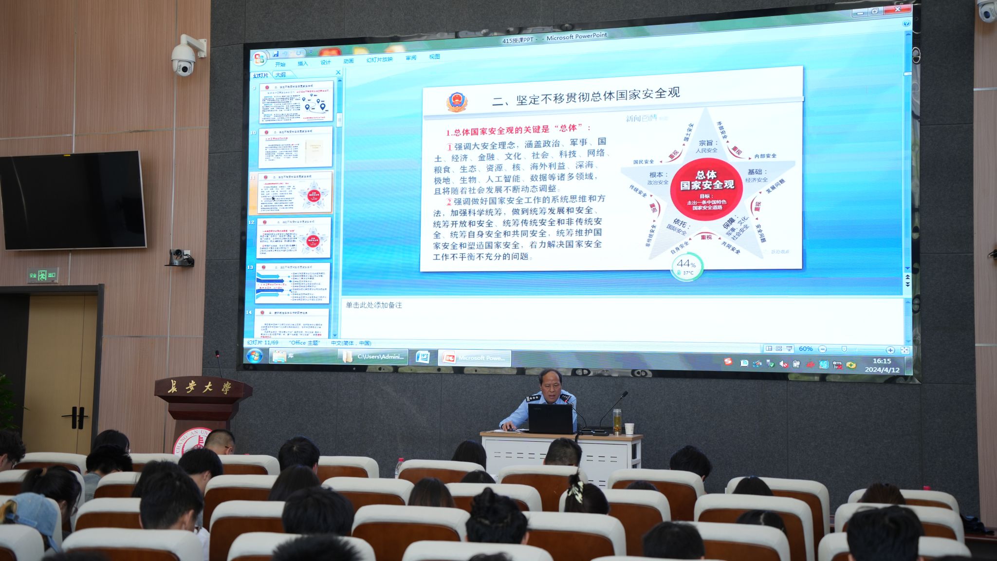 陈军利结合自身30余年办案经验,为同学们带来了《认清形势,筑牢维护国家政治安全防线》的主题团课。团课中对当前形势下我国所面临的风险、如何巩固国家政治安全、大学生该如何做等方面进行了深刻的讲解,使大家对“国家安全”有了更深入的认识和理解。