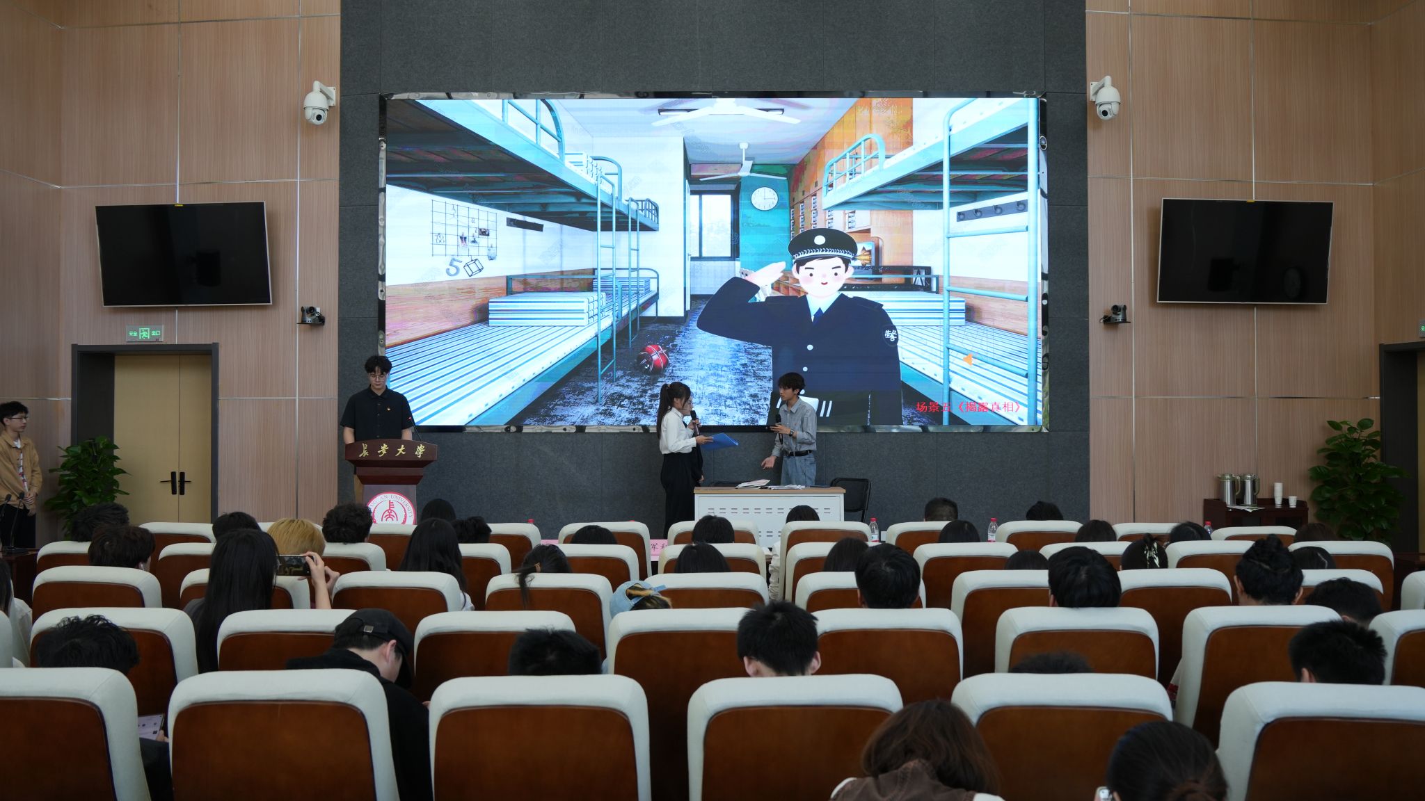 建筑学院团员代表张钰钧、王熙春、刘怡婷、饶逸林、何环坤、邹昊东六位同学结合真实案情、专业特长,表演了原创情景剧《潜影》,用青年听得懂的语言、接地气的方式,生动诠释青年人在维护国家安全中的正确做法。