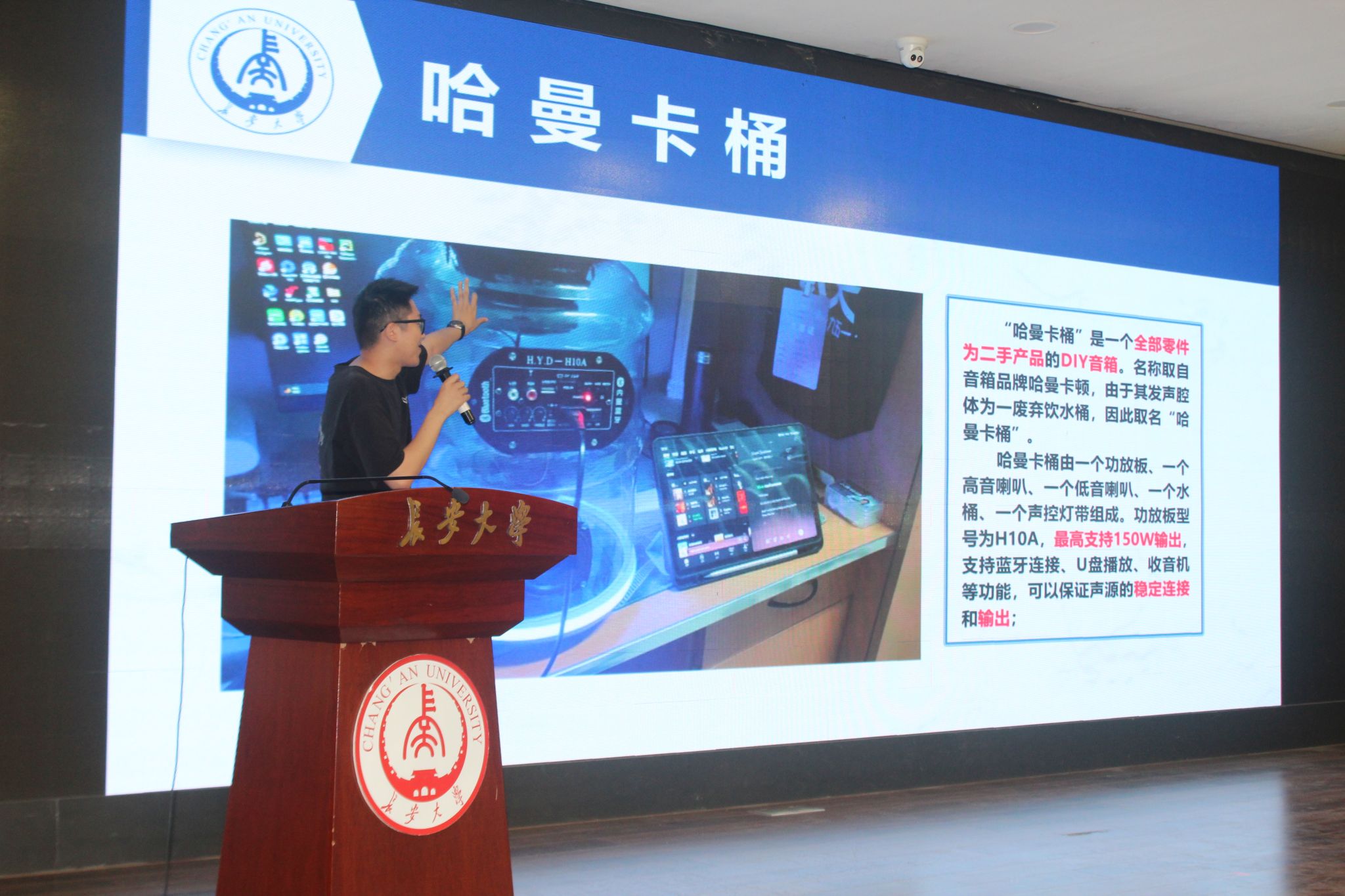 经过初赛选拔,全校共有12支队伍晋级决赛,决赛分为作品讲解、评委提问、知识抢答等环节。参赛队伍分别从作品立意、所用材料、创作过程、实用性能等方面进行展示讲解,评委们现场提问并点评。在环保知识抢答环节,参赛选手踊跃参与,现场气氛热烈。本次参赛作品融生态性、环保性、实用性与科技性于一体,同学们将所学专业知识用于作品创作之中,通过科技创新等手段赋予废旧物品新的生命,既减少了环境污染,又实现了资源的循环再利用,作品特色鲜明、亮点突出。经过激烈角逐,作品《哈曼卡桶》荣获一等奖,作品《垃圾箱》《趣味投篮机》荣获二等奖,作品《扫地车》《苏州园林》《羽毛球灯》荣获三等奖。
