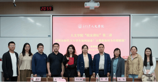 何红娟讲述了学院开设“校友讲坛”的初衷和目的。她指出,人文学院“校友讲坛”的举办,是希望人文学院的优秀校友能够分享自己在深耕领域发展、探索的经验,让在校学生得到借鉴与启发,明确自己的发展方向。何红娟鼓励同学们科学评估自身优势,增强学习动力、认真刻苦钻研、加强沟通交流、积极投身实践,结合自身特点做好职业规划,通过奋斗实现为国家社会服务的人生理想。