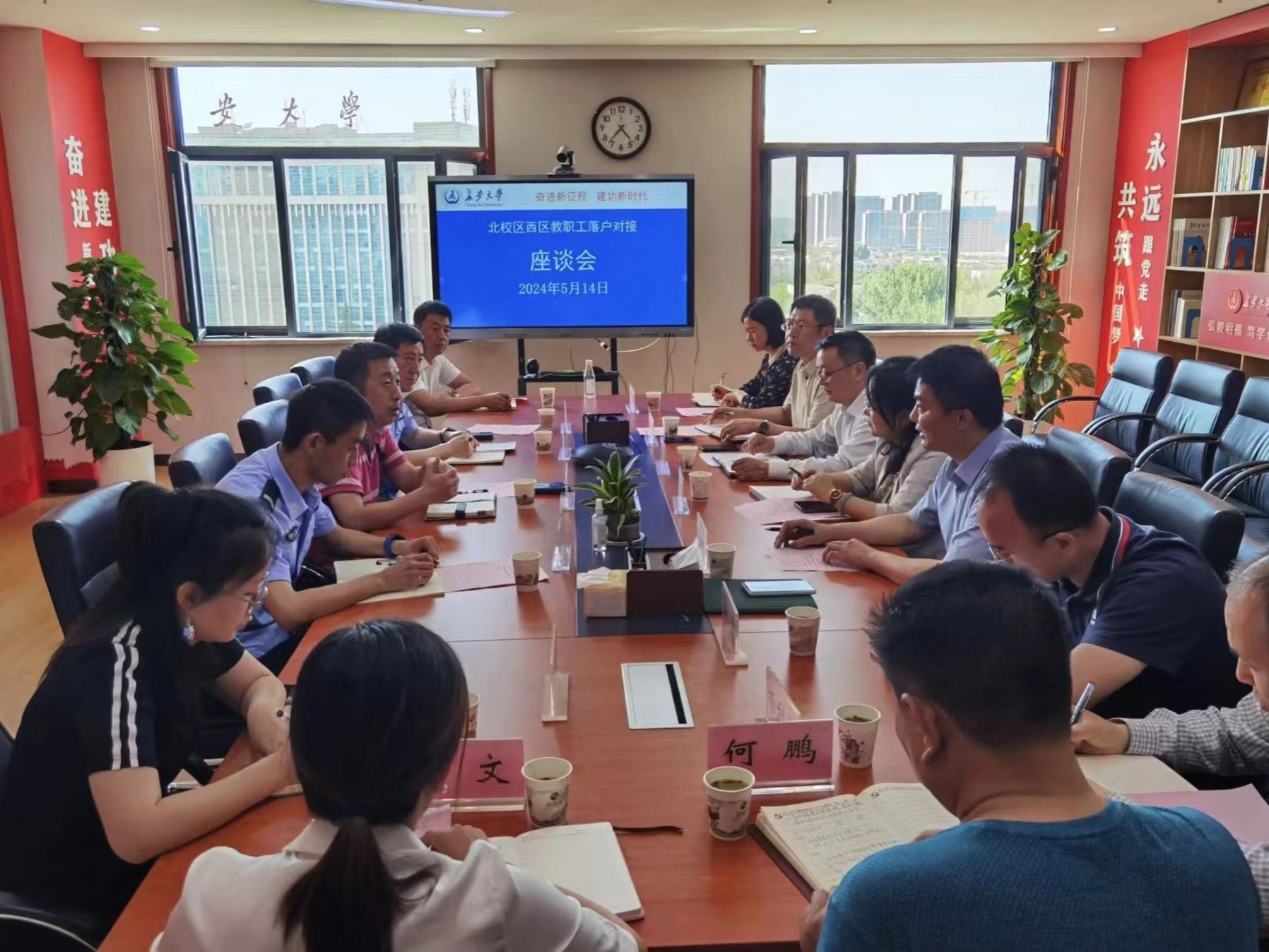 会议由基础教育办公室主任、附属学校校长雷显锋主持。保卫处处长、保卫工作部部长黄飞就学校综合治安情况做了详细介绍,他对警校共治、警务室办公条件保障及身份证、居民证、户籍证办理等工作做了责任明确和相关安排。校办副主任郑玮华从历史沿革、学科建设、科研实力、师生规模等方面介绍了学校发展情况。后勤处副处长畅琰联合物业公司经理就住宅区总体情况、入住现状及住户构成做了介绍,并就住户居住证办理等现实困难提出需求,之后将工作用房业主信息再行明确并提供最终名单。工会副主席杨利锋就教职工普遍关心的问题做了交流沟通。