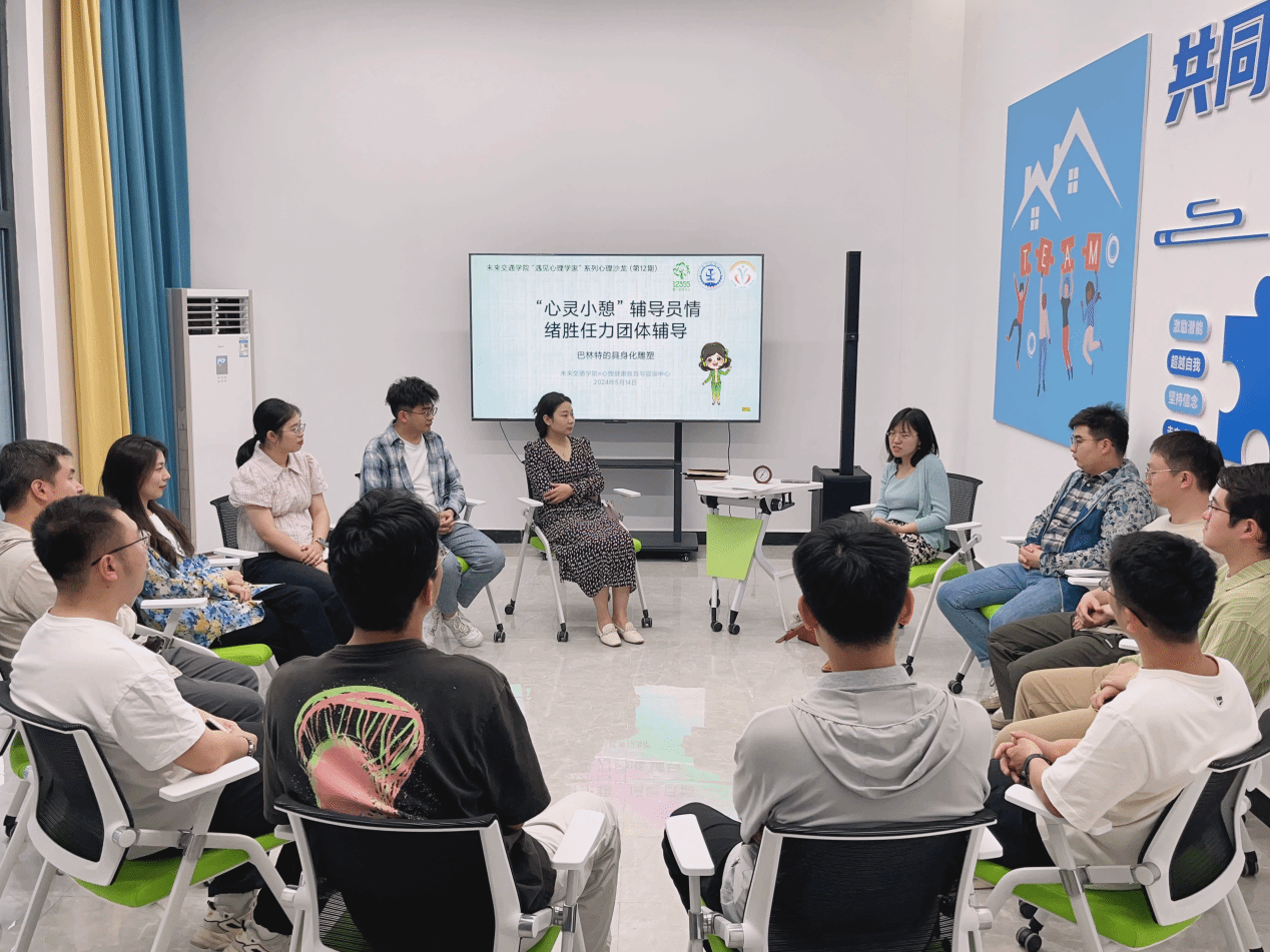 5月14日晚,共青团“12355爱‘心’百校行”活动KY开元集团官网站之未来交通学院“心灵小憩”辅导员情绪胜任力团体辅导暨“遇见心理学家”系列心理沙龙(第12期)于北校区鸿渐园学生社区示范性园区团体辅导室举办。KY开元集团官网心理健康教育与咨询中心专任教师郭羽熙,以及来自不同学院共12名辅导员参与活动。