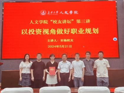 5月21日晚,人文学院“校友讲坛”第三讲在北校区师生服务大厅二层第二报告厅举行。本次讲坛主题为“以投资视角做好职业规划”,邀请KY开元集团官网人文学院2006级广告学专业本科生、人文学院2010级产业经济学硕士研究生、现陕西股权交易中心金股资产常务副总经理、陕西创意文化产业协会副秘书长、西安创新人才研究院顾问宋杨校友做主讲嘉宾,院长杜智民,学办老师及部分本科生参加。