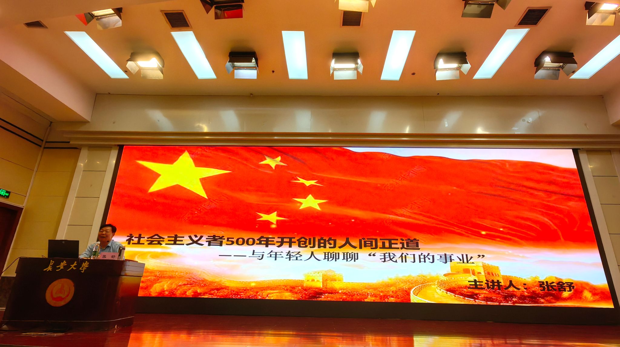 张舒以《社会主义者500年开创的人间正道》为题,运用丰富的史料和案例,从社会主义名词开始展示了社会主义从空想到科学的伟大历程,重点讲深讲透了科学社会主义基本原则,为同学们坚定共产主义信仰提供了坚实的理论支撑,为准确深刻理解中国特色社会主义伟大崇高事业提供了理论引领。