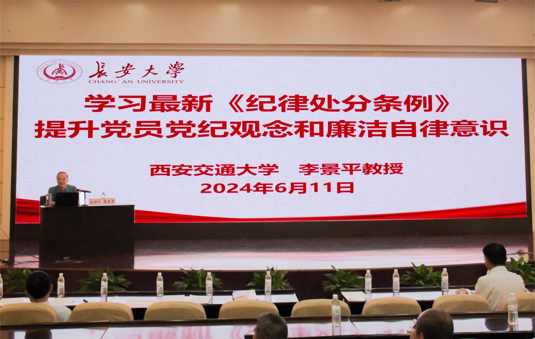 6月11日下午,工程机械学院邀请西安交通大学马克思主义学院教授、博士生导师李景平作党纪学习教育专题报告,学院领导班子成员、全体教工党员参加学习。报告由学院党委副书记、副院长,纪委书记范婷主持。