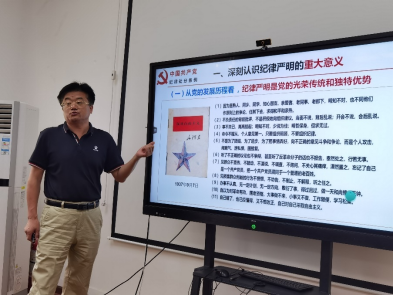 黄喜峰以《以严明的纪律推动全面从严治党向纵深发展》为题讲授党纪学习教育专题党课,他结合自身学习体会和工作经验,对《中国共产党纪律处分条例》(以下简称《条例》)进行了深入解读。黄喜峰指出,要深刻认识纪律严明的重大意义,准确把握《条例》修订的主要内容和特点,切实抓好《条例》的学习贯彻,希望全体党员干部能在日常学习和工作生活中,不忘初心、牢记使命,增强守纪守规和监督意识,勇于担当时代使命,为学院的高质量发展贡献自己的力量。
