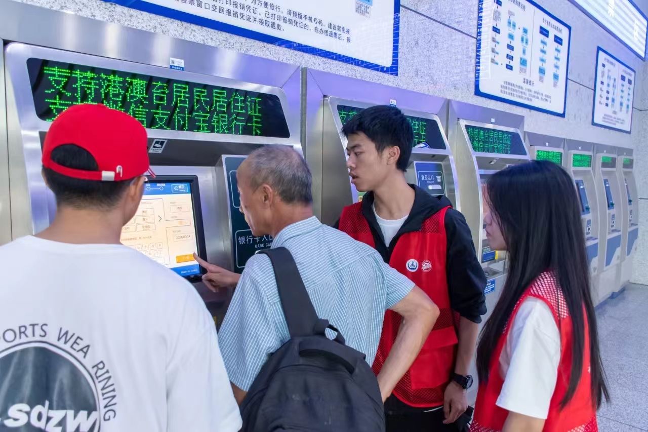 担使命,展现交通学子风采。在成都公交集团金沙枢纽站,实践队不仅学习了公交运营调度指挥中心系统的运作原理,还深入一线,在实际运行中体验公交调度的紧张与有序。在雅安车站,实践队围绕城际列车开行推动乡村振兴等话题展开访谈调查,收集了大量一手资料。经过站长统一培训后,队员们身着“志愿红”,为旅客提供购票指引、信息咨询、秩序维护、行李搬运和卫生清洁等细致周到的服务,得到了站内外群众和工作人员的好评。