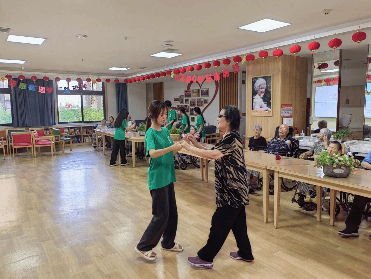 深入基层暖夕阳,敬老行动传温情。在张家堡街道春和社区,实践队跟随社区工作人员深入六户家庭,与居民们亲切交流,深入了解了居民们的日常生活以及社区服务相关情况。在未央宫街道综合养老服务中心,实践队精心准备了丰富多彩的节目,与长者们随着乐曲起舞,用青春的热情为他们带去欢笑与慰藉。在康源养老·康源中成城市颐养中心,实践队进行社区化养老服务探索,将艺术与志愿活动相结合,用实际行动关怀长者。