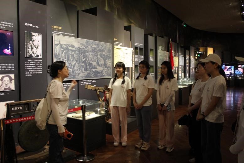 实践队成员聆听讲解员讲解历史