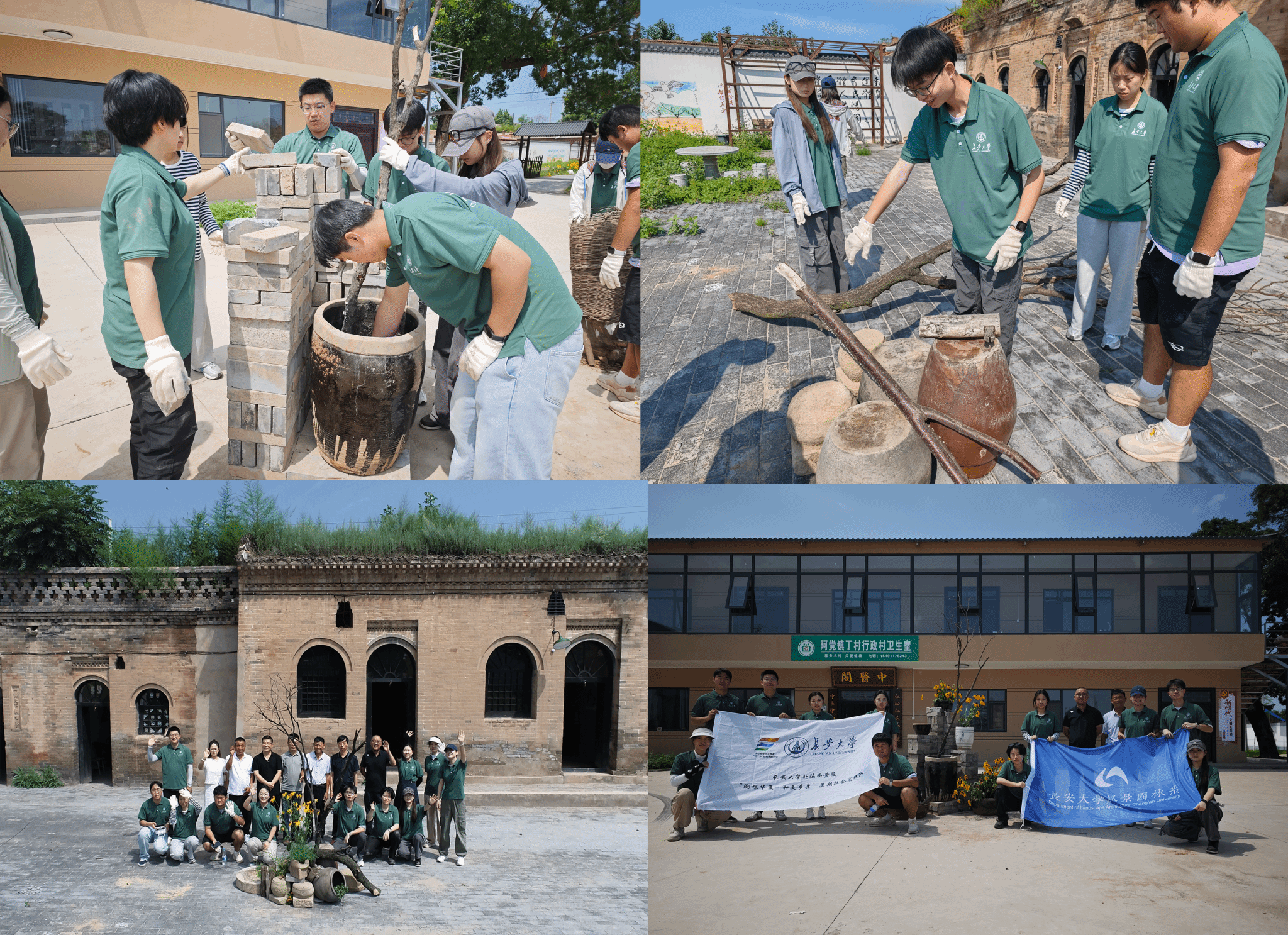 “枯木逢春”迎新生,“设计下乡”暖人心。8月22日,实践队前往丁村将设计方案进行现场搭建,在县住建局与丁村干部与村民支持下,就地取材,将丁村特色的酱菜坛、碾盘、青砖、枯树枝等乡土材料,巧妙地融入设计,赋予艺术的魅力。在明清窑洞院落的展示区搭建“枯木逢春”主题园艺小品,以期与明清古窑洞交织出一段历史与未来的对话,象征着丁村的复兴与新时代的辉煌,村民们对实践队的搭建成果和动手能力表示称赞和认可。