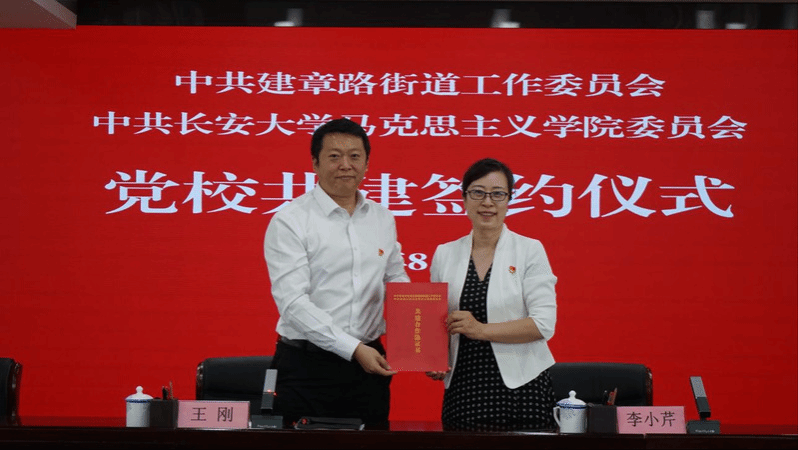 为深入学习习近平新时代中国特色社会主义思想,贯彻党的二十大和党的二十届三中全会精神,打造新时代“党校+高校”育人新模式,8月23日,马克思主义学院与西安市建章路街道党工委党校举行合作签约仪式。建章路街道党工委书记王刚、副书记王雪娥、王塔利,马克思主义学院党委书记李小芹,副院长王立洲参加会议。