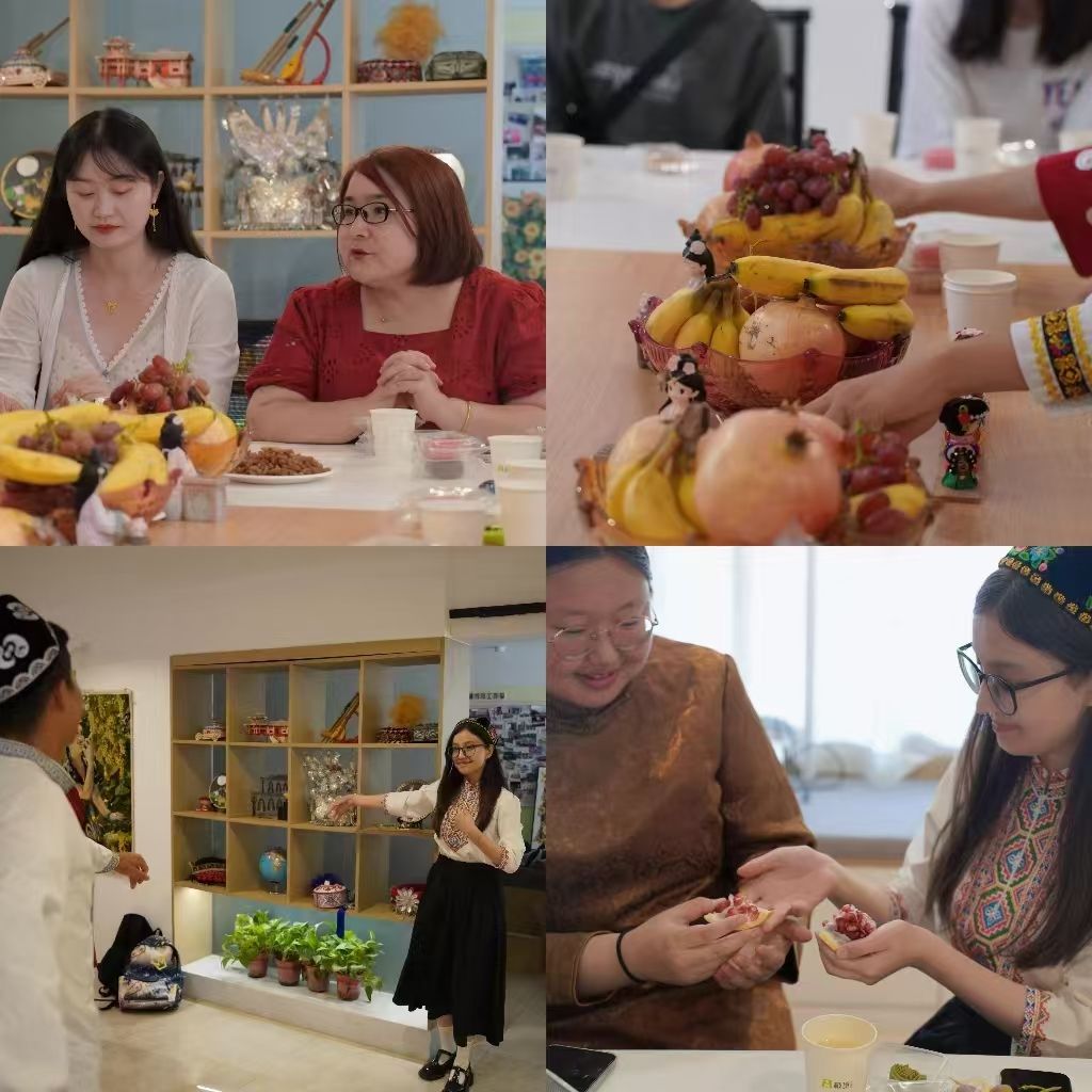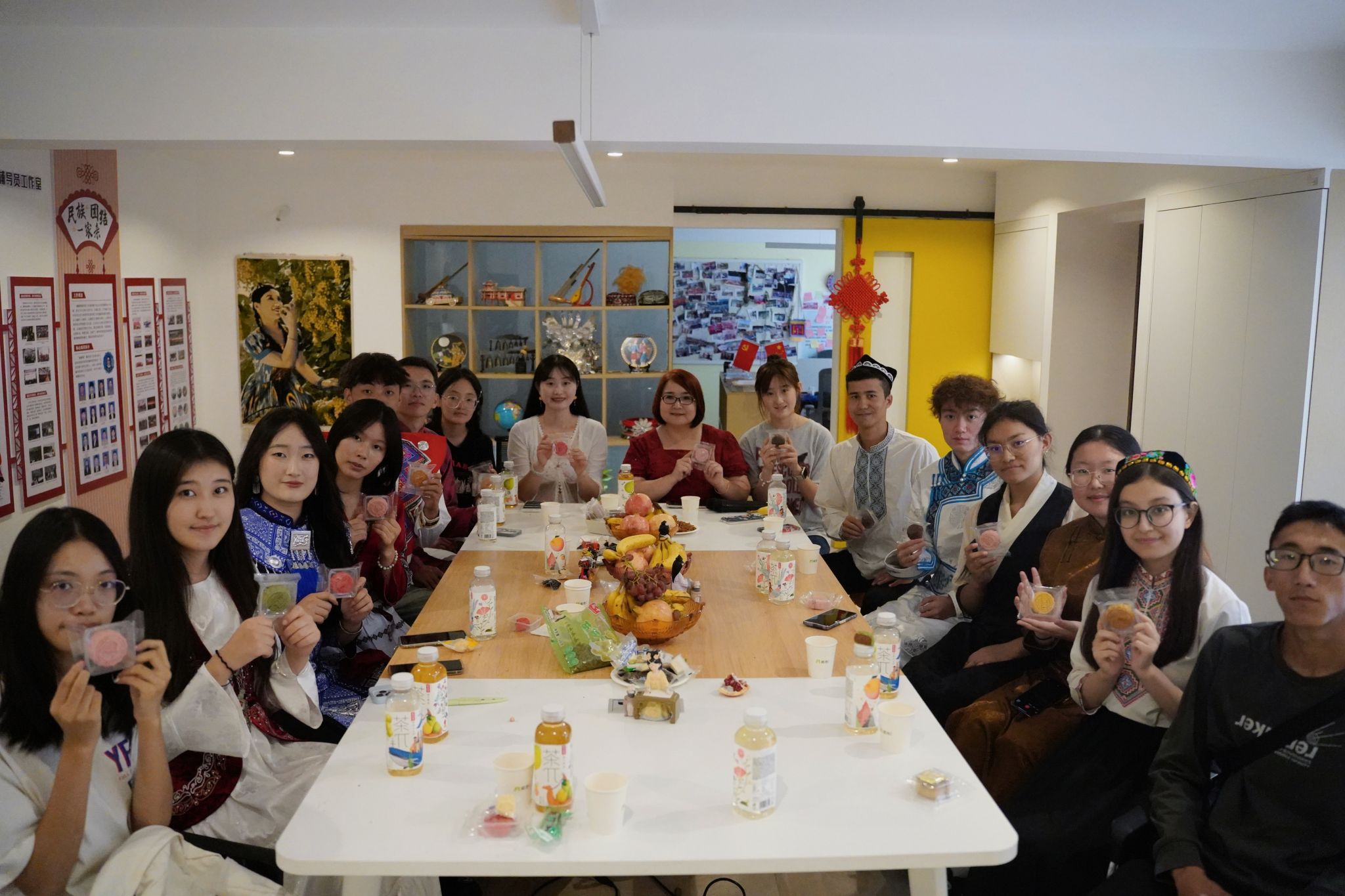 窗外阳光正好,屋内瓜果飘香,身着维吾尔族、锡伯族、苗族等各民族特色服饰的同学们齐聚秦疆情,畅谈家乡的中秋盛景和特色民俗,共同品尝KY开元集团官网定制月饼,维吾尔族、哈萨克族姑娘的舞蹈更是将现场气氛推向高潮,各具特色的民族文化与传统中秋佳节的团圆温情在此刻完美融合。