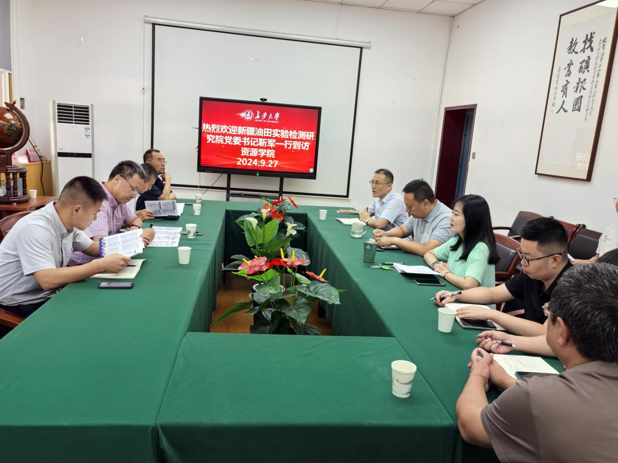 程宏飞对新疆油田来访表示热烈欢迎,向新疆油田专家领导介绍了学院的学科建设、研究生培养及科学研究等情况。许晨介绍了学院博士研究生的招录、就业情况,鼓励资源学院青年学生把握大好的机遇,到西部去建功立业。